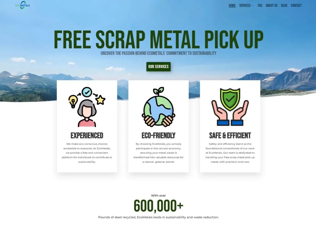 A clean, conversion-focused site for a scrap metal pickup service committed to free, eco-friendly recycling.